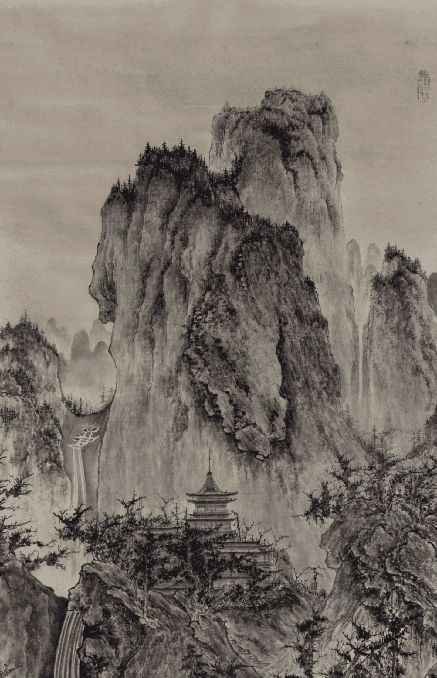 遙看瀑布掛前川 (요간폭포괘전천)
